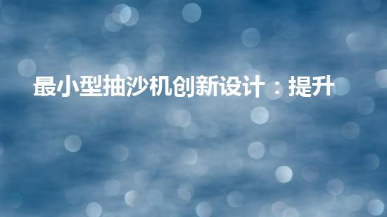 最小型抽沙機創(chuàng)新設(shè)計:提升效率的抽沙設(shè)備如何改變產(chǎn)業(yè)格局?